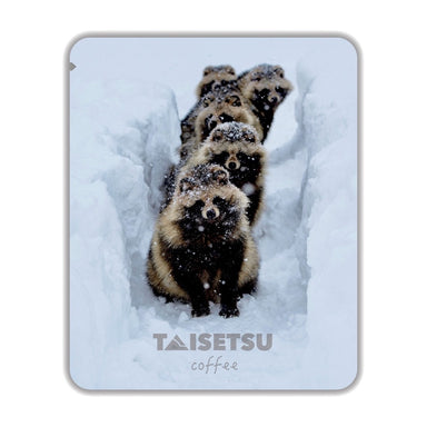 エゾタヌキが引っ越しをしている写真です。先頭の子が立ち止まると、後ろの子たちが何が起きたのかと覗いていました。可愛らしいですよね。 TAISETSU COFFEEの代表とも言える人気のフォトシリーズ。 北海道の風景や動物の写真が鮮やかにプリントされ、まるでポストカードのようなパッケージです...