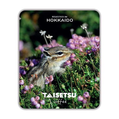 コエゾツガザクラの蜜を舐めるエゾシマリスです。花の蜜を舐める個体は限られていて、お母さんリスが子育て中に水分補給、糖分補給をしていると考えられます。 TAISETSU COFFEEの代表とも言える人気のフォトシリーズ。 北海道の風景や動物の写真が鮮やかにプリントされ、まるでポストカードのよ...